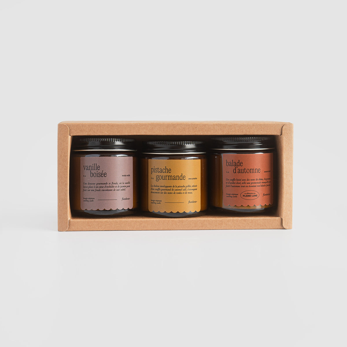 For Quebec and Ontario orders placed on flambette.com, we offer a fixed shipping rate of $12 and free shipping over $79 (before taxes). For the rest of Canada and United-Stated, the rate is variable and will be displayed at checkout.