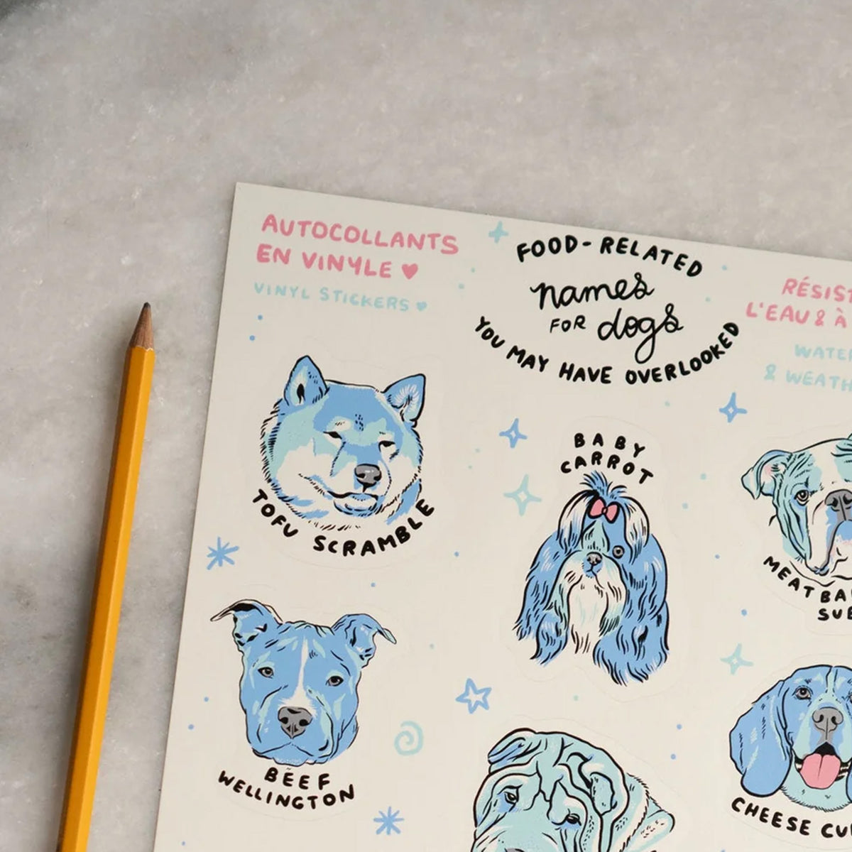 Gigantic sticker sheet featuring Stay Home Club's "Food Dogs" design! This 8" x 10" sheet contains 9 stickers of roughly 2"-2.7" on their longest side. It's absolutely perfect to add a little something to your water bottle, your laptop cover, your planner, and the list goes on!