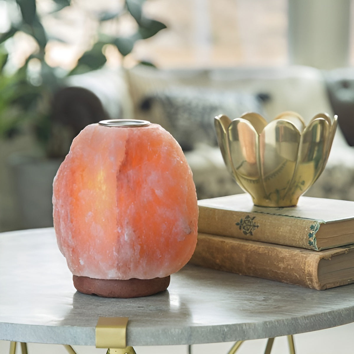 This Himalayan salt lamp features an integrated cup for warming essential oils. It diffuses a soft, warm light while allowing you to enjoy the combined benefits of salt and essential oils.