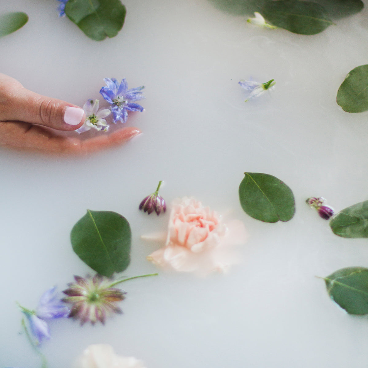 Cover your bath in a smooth veil by pouring sixto eight tablespoons of milk into running water.