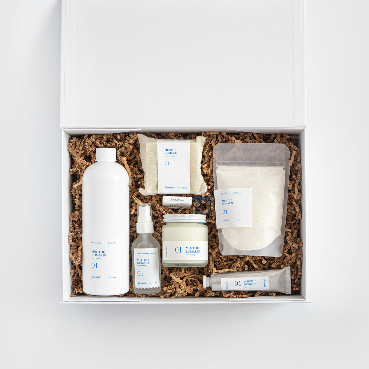Pour offrir en cadeau ou découvrir votre nouvelle gamme de produits chouchou, la boîte intégrale regroupe la plupart des produits de nos fragrances les plus populaires.