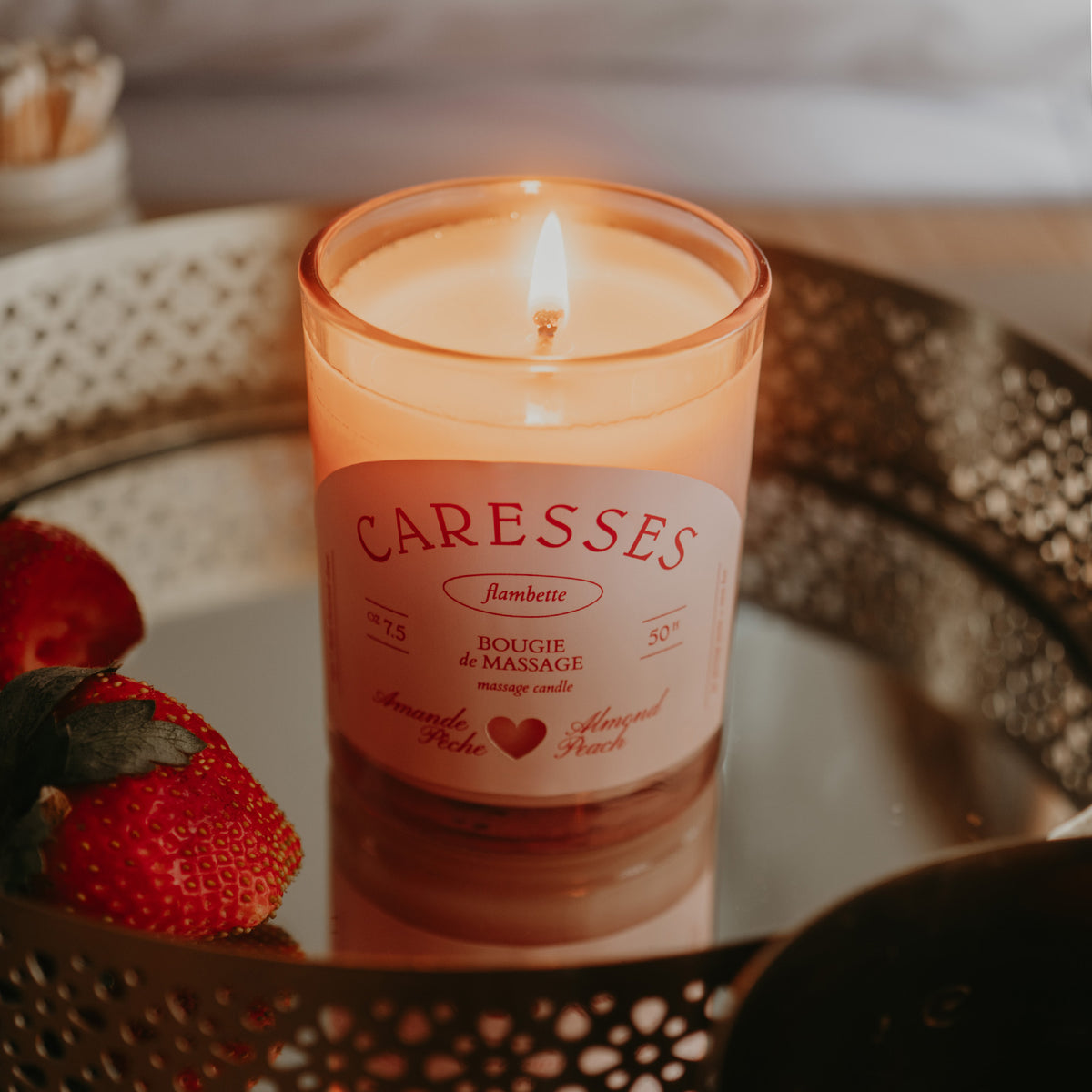 Souffler la bougie, tremper les doigts ou verser sur la peau, masser.