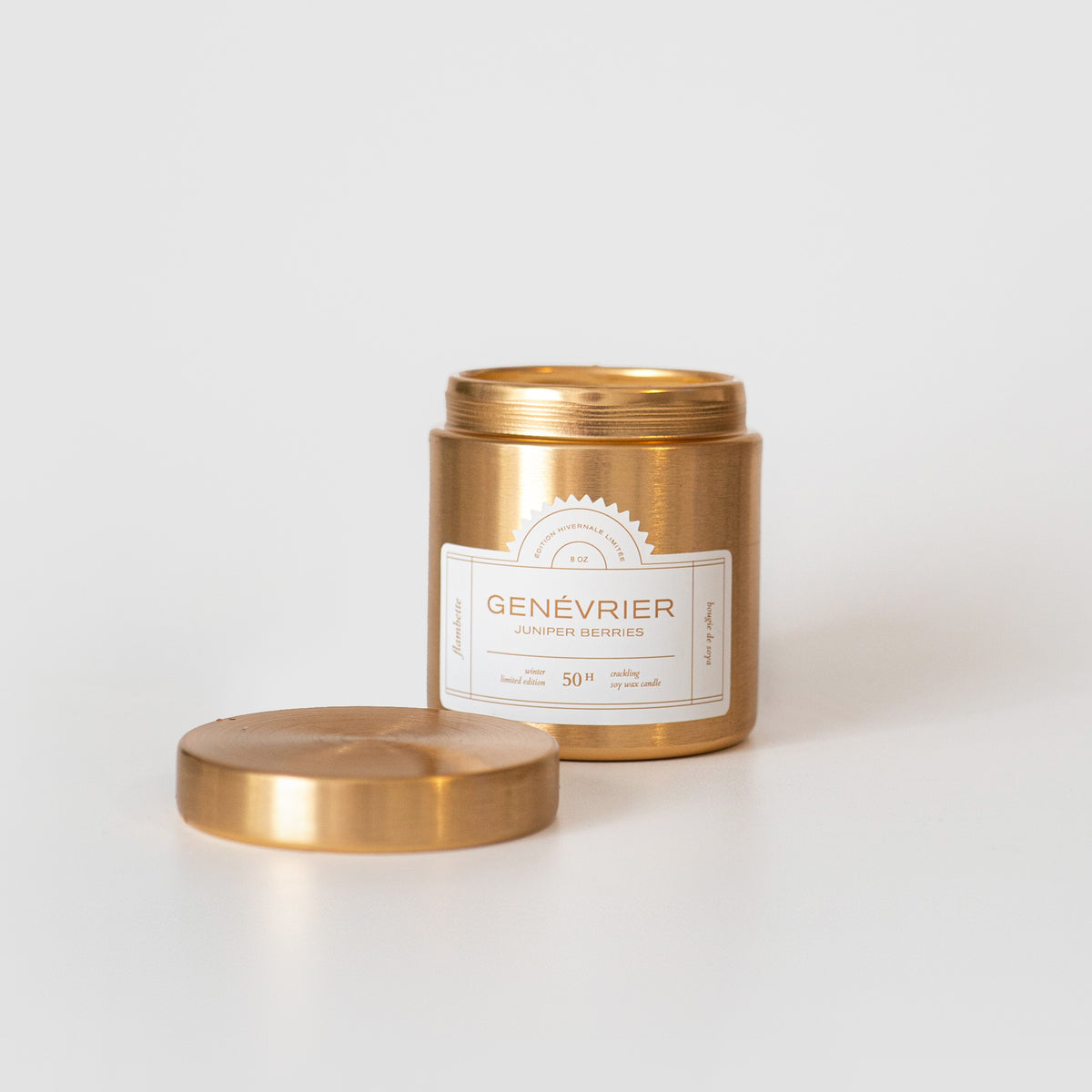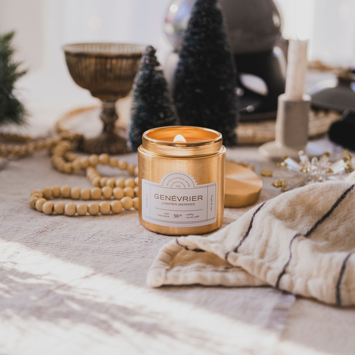 Elle est de retour parce que vous l'avez tant aimé, la bougie Genévrier! Un parfum hivernal complexe qui se sent réconfortant et festif. Des notes qui émettent les tons terreux du genévrier et de ses baies et qui s'approfondissent avec un soupçon de votre odeur préférée, un sapin fraîchement coupé!