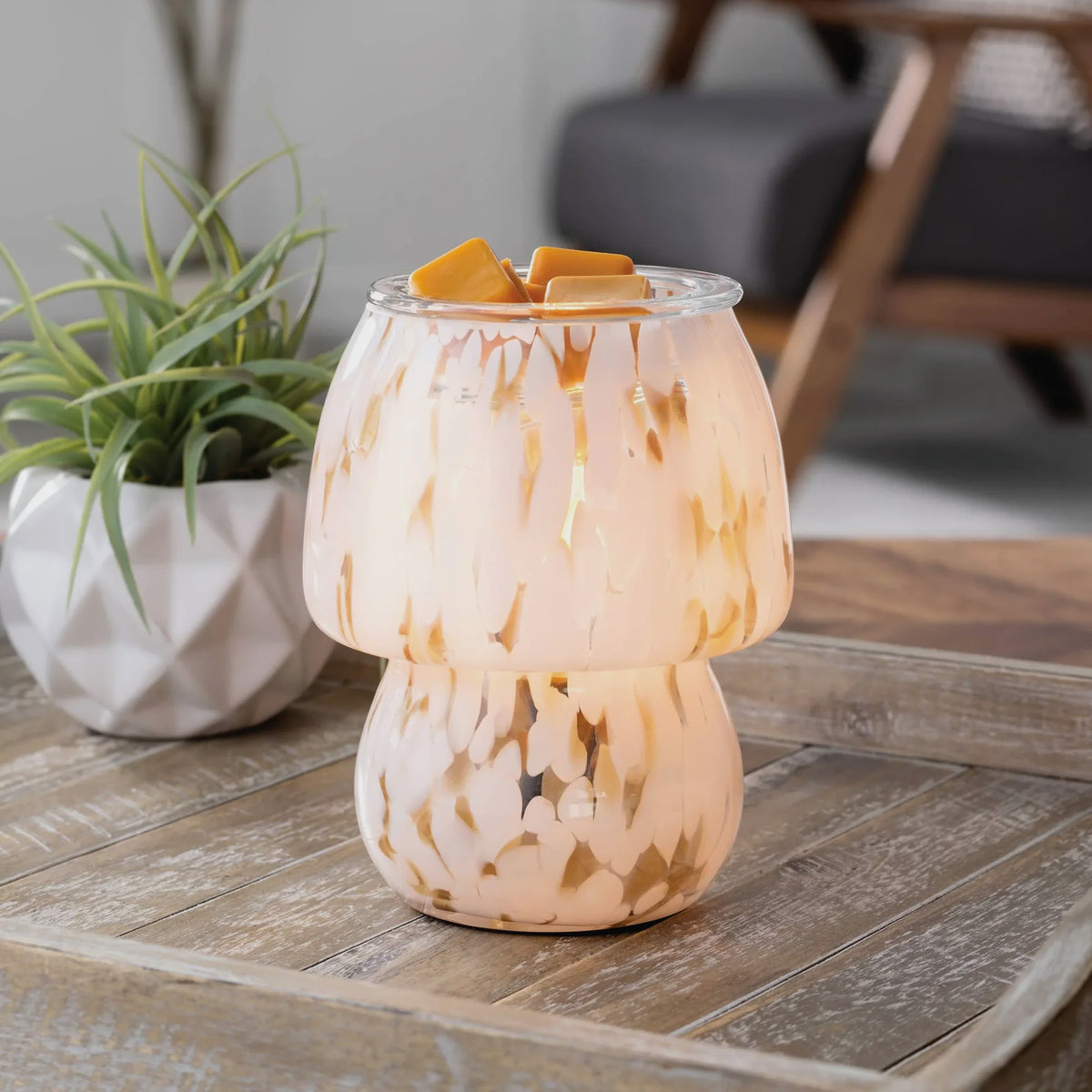 Ajoutez quelques cubes de cire parfumée dans le plat chauffant amovible pour libérer doucement le parfum dans toute la pièce.