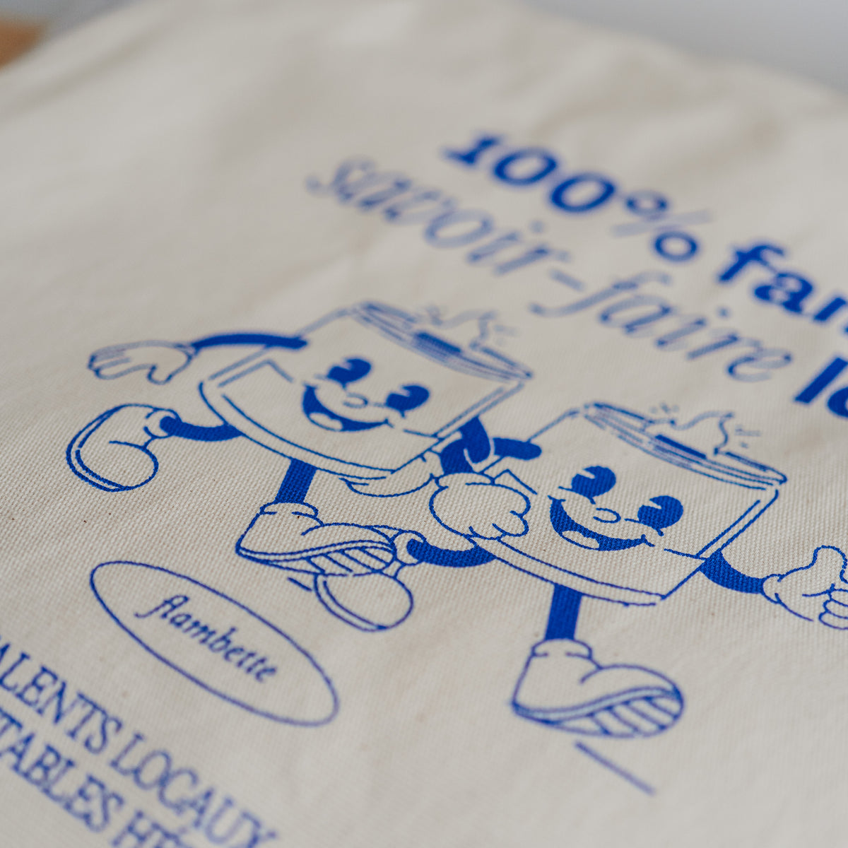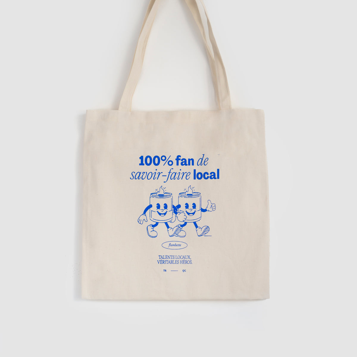 Pour transporter tes bouquins, tes cossins ou pour un p’tit tour à l’épicerie du coin, quoi de mieux qu’un joli sac pour supporter tes héros locaux? Ça fait aussi un joli sac cadeau écolo pour offrir des produits flambette! On dit ça de même…