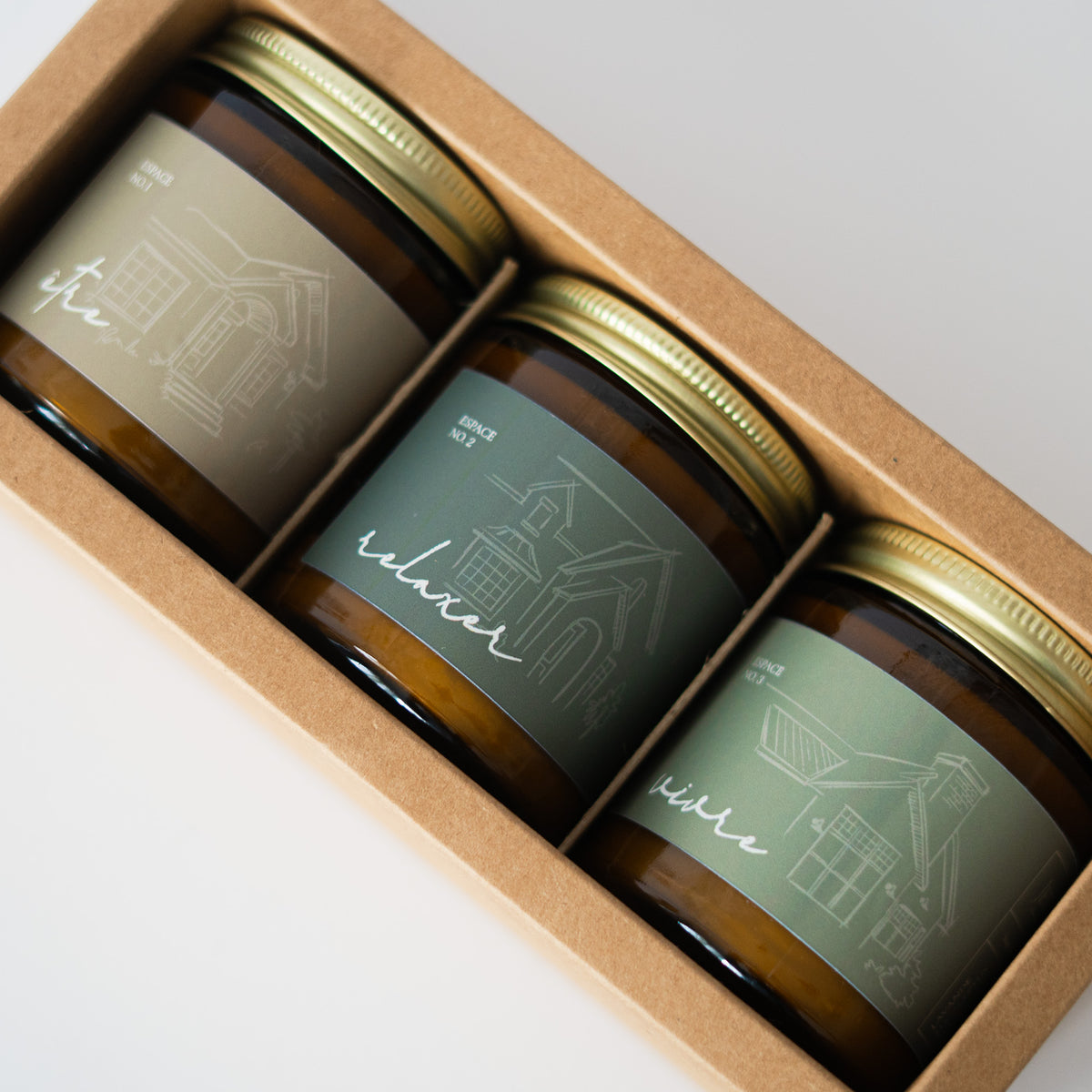 Nous avons collaboré avec Jenn et Dessins Drummond pour concocter ce trio. L’idée? Vous accompagner dans votre quotidien, pièce par pièce, avec des ambiances olfactives qui complètent votre sentiment de bien-être dans votre maison rêvée. Parce qu’une maison, c’est bien plus que des murs; c’est une sensation, une atmosphère… une odeur qui vous ressemble.